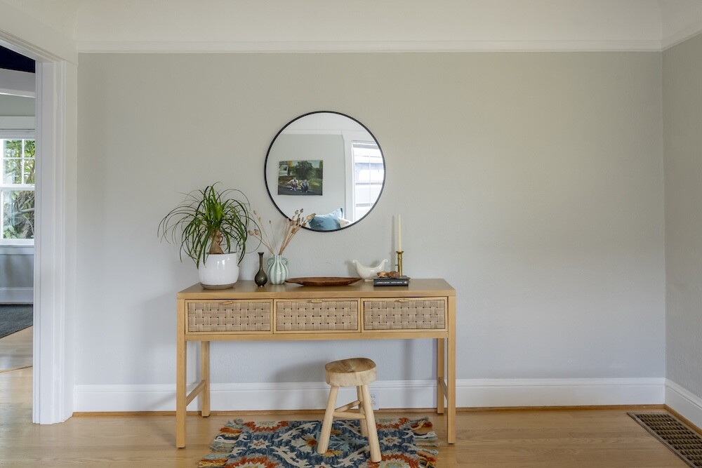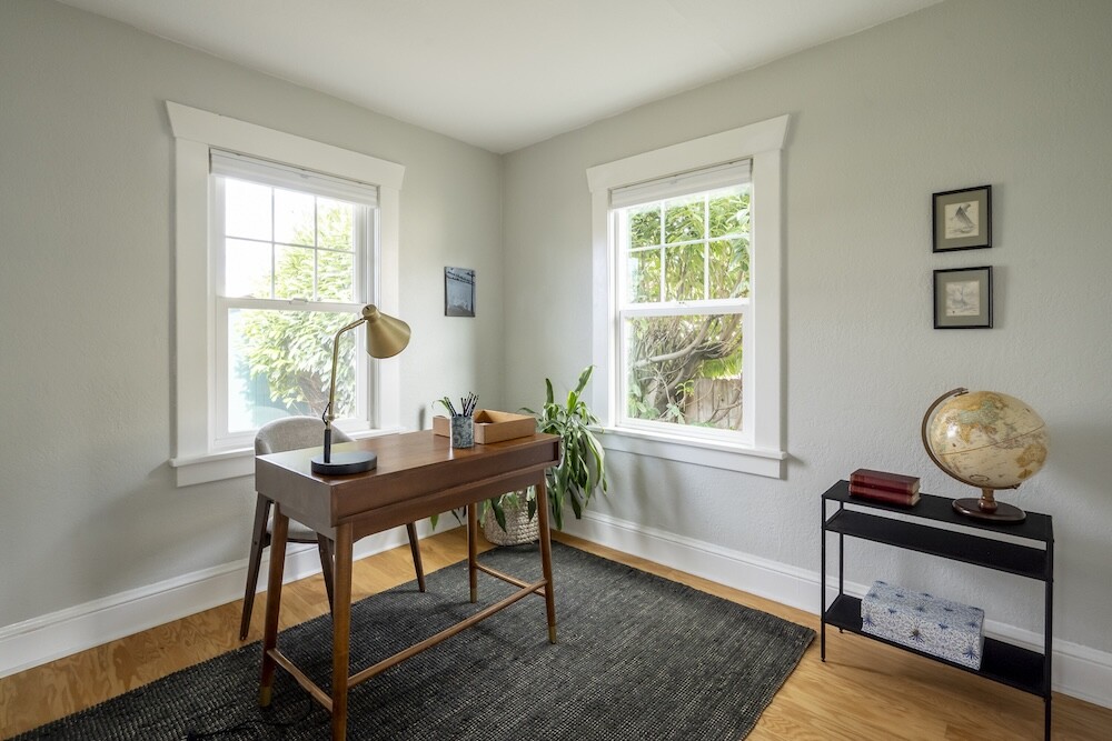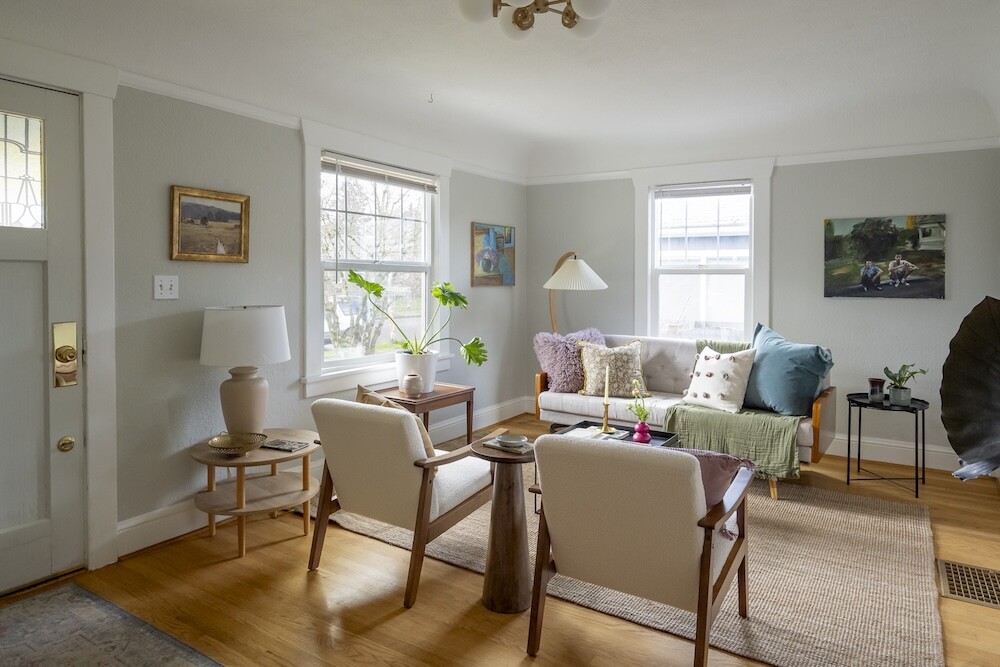 Double pane windows let in the lovely light, reflecting off original hardwood floors and infusing the living spaces with a warm, calm atmosphere.