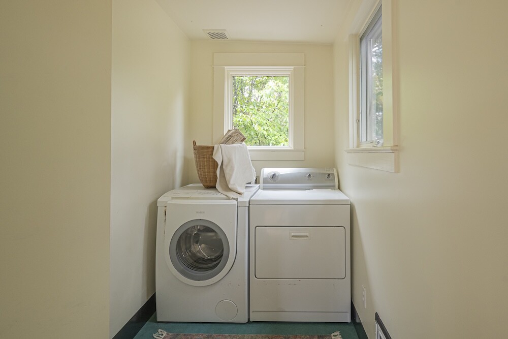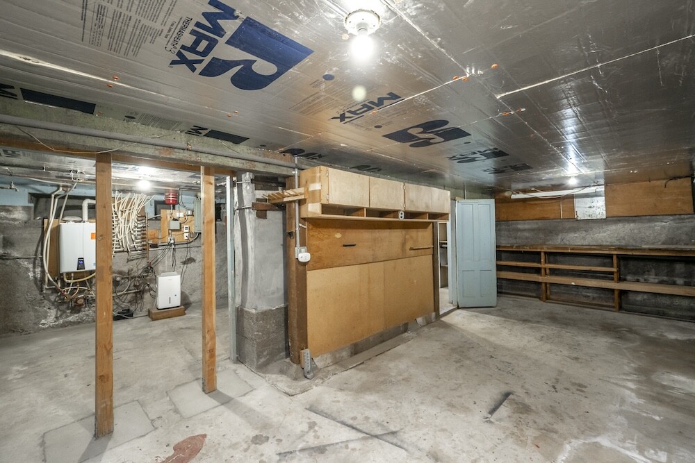 A large unfinished basement provides ample storage, including for the results of canning your garden’s bounty.