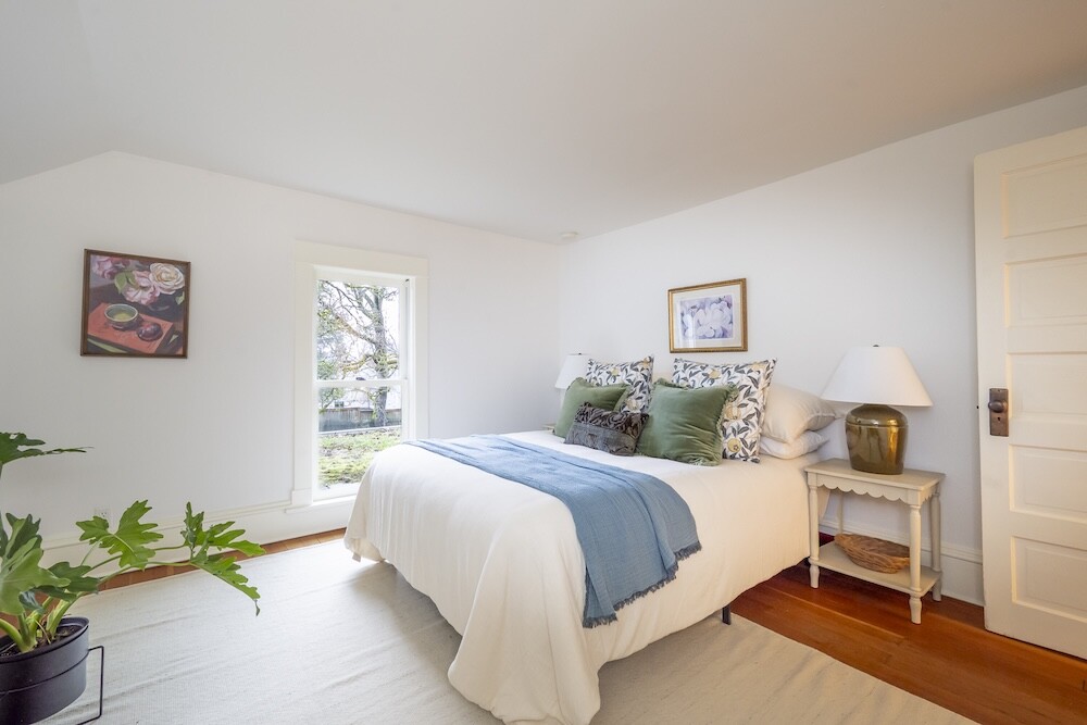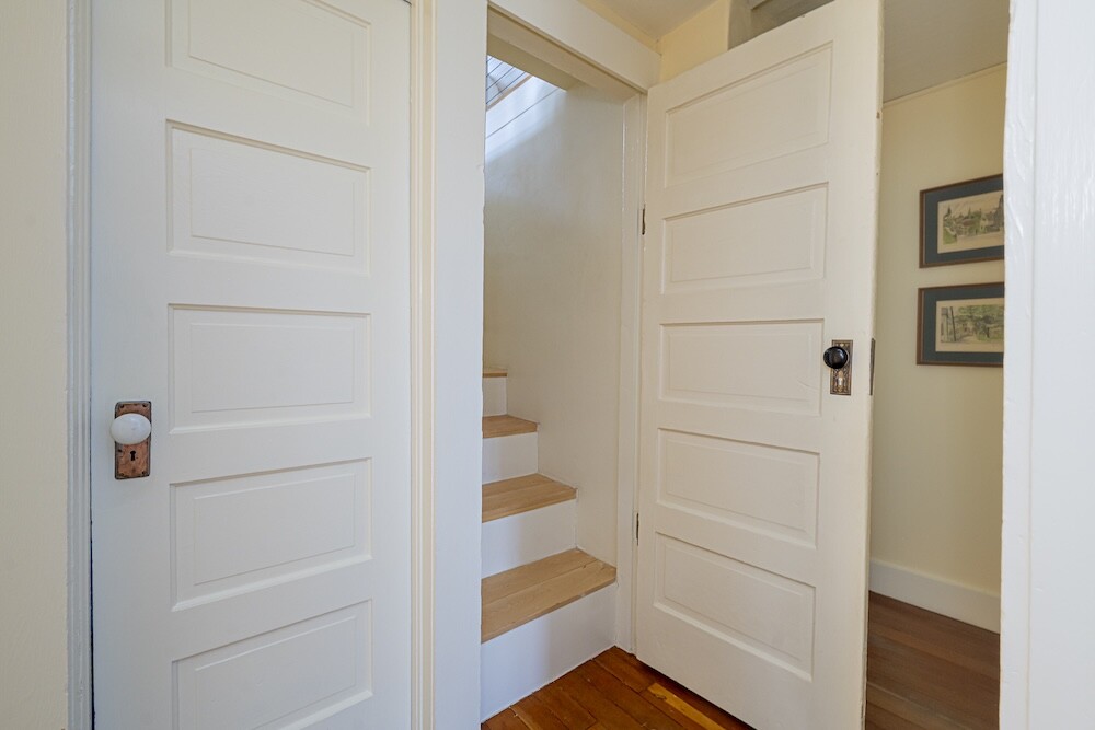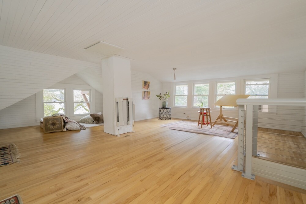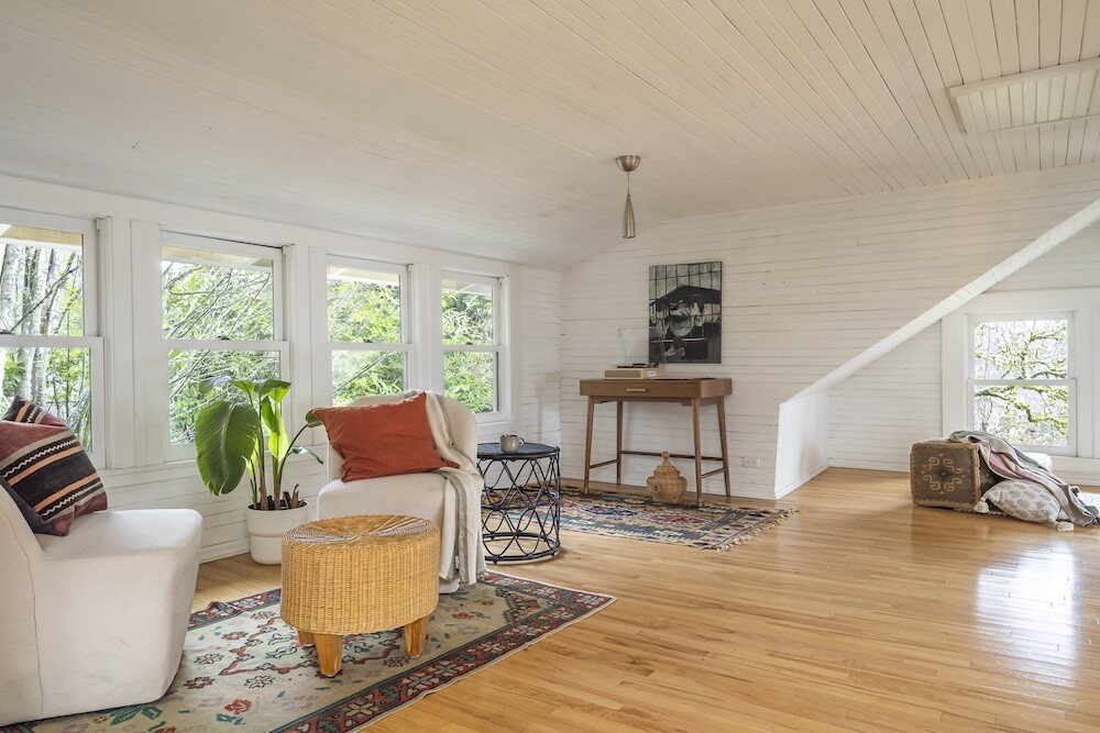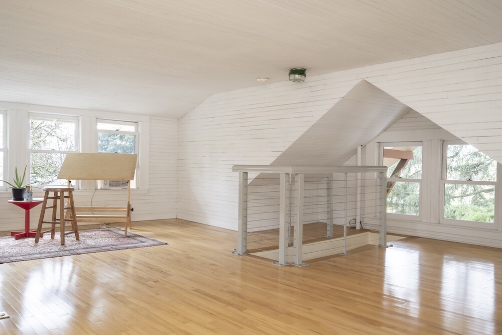 Upstairs, three good-sized bedrooms, with a full bath for convenience. Ascend one floor further to a magical, open bonus space, ideal as an art or yoga studio, a place to create and unwind.