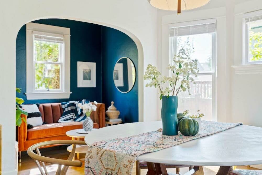 But that doesn’t mean we drain every ounce of personality. We usually tone things down and then add a splash of color that photographs beautifully, the kind of moment that makes a listing feel warm, intentional, and modern without overwhelming buyers. (Think soft olive, muted plum, a perfect moody blue)